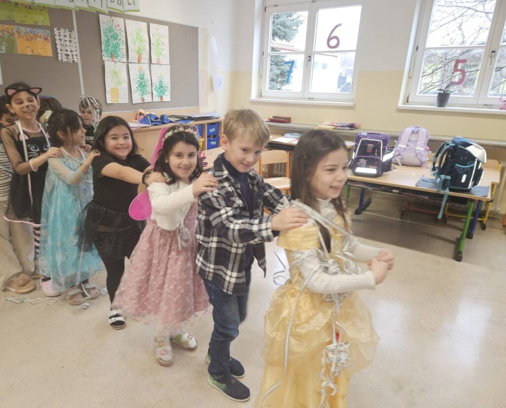 Am Rosenmontag waren alle Kinder eingeladen verkleidet in die Schule zu kommen. Innerhalb des Klassenverbandes wurden Spiele, Rätsel, Tänze und vieles mehr veranstaltet.Ein besonderer Dank gilt dem Elternverein, der allen Kindern und Lehrer*innen Krapfen zur Verfügung gestellt hat.