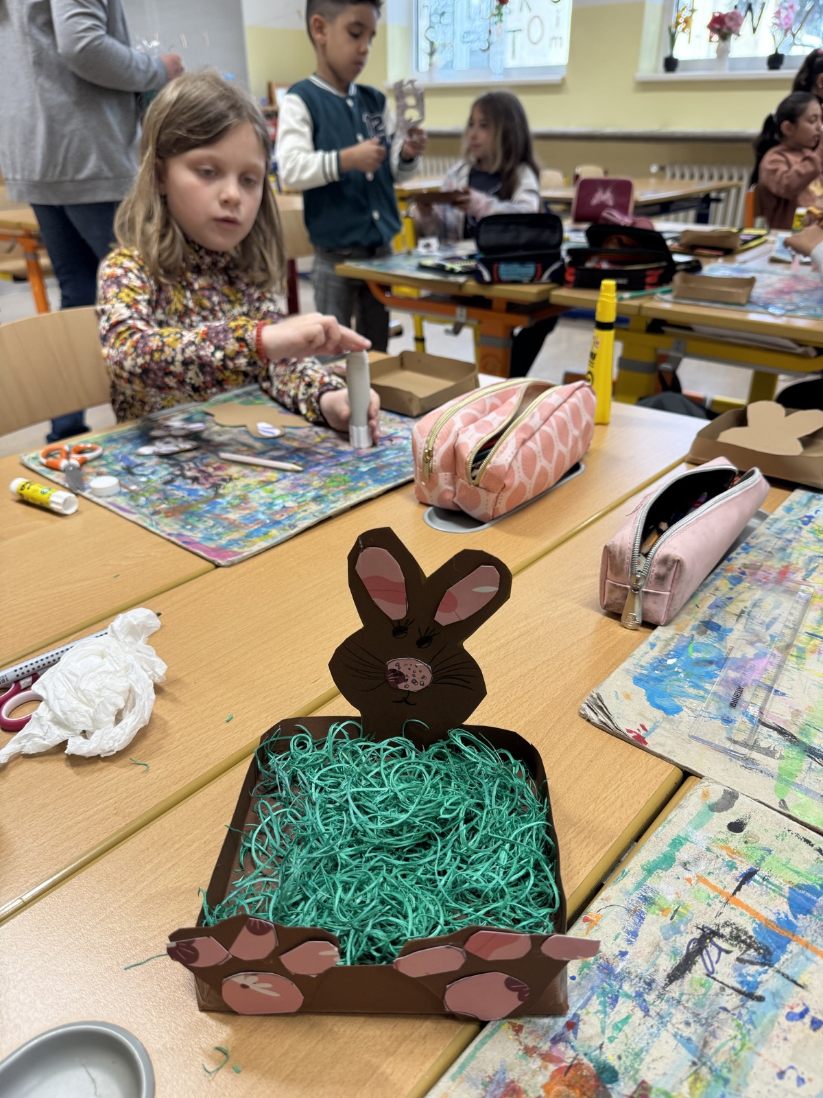 Wieder einmal fand an unserer Schule wieder ein kreativer Ateliertag statt – diesmal ganz im Zeichen von Ostern. In verschiedenen Ateliers konnten die Kinder mit viel Freude und Fantasie unterschiedliche Osterkörbchen gestalten.